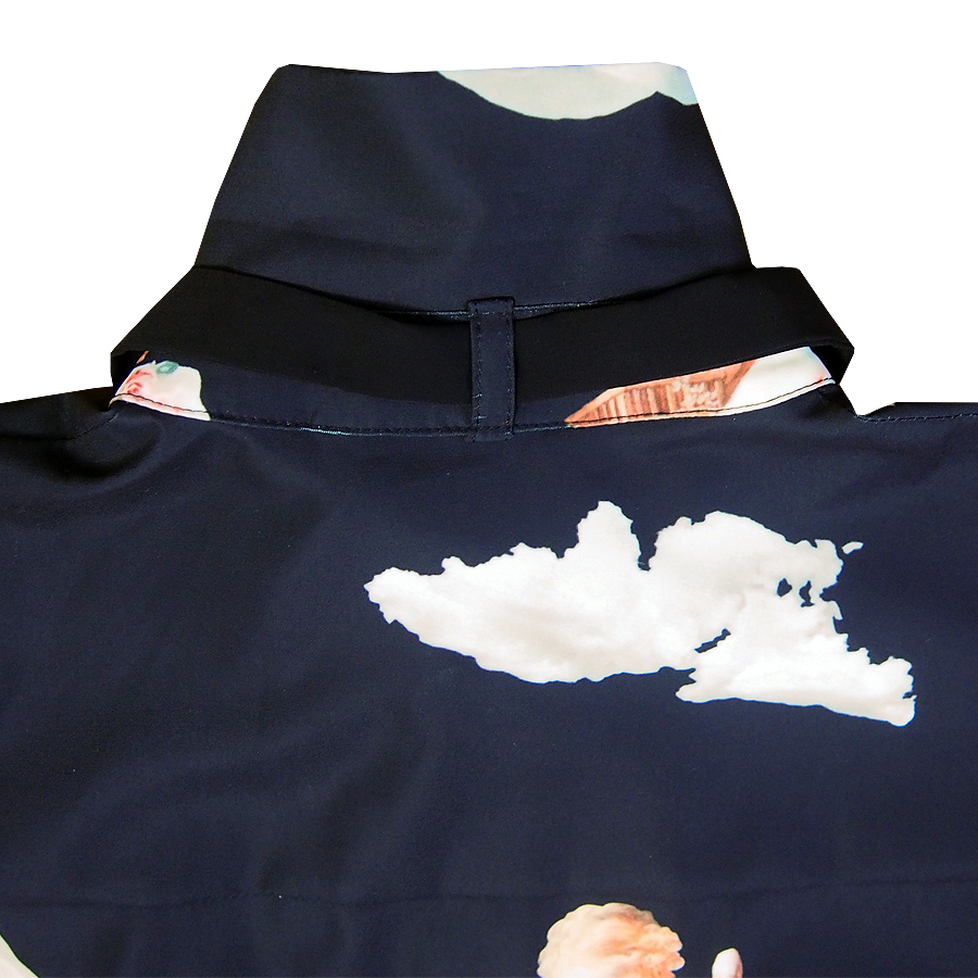 天使のグラフィックを総柄でプリントしたプリントシャツ。