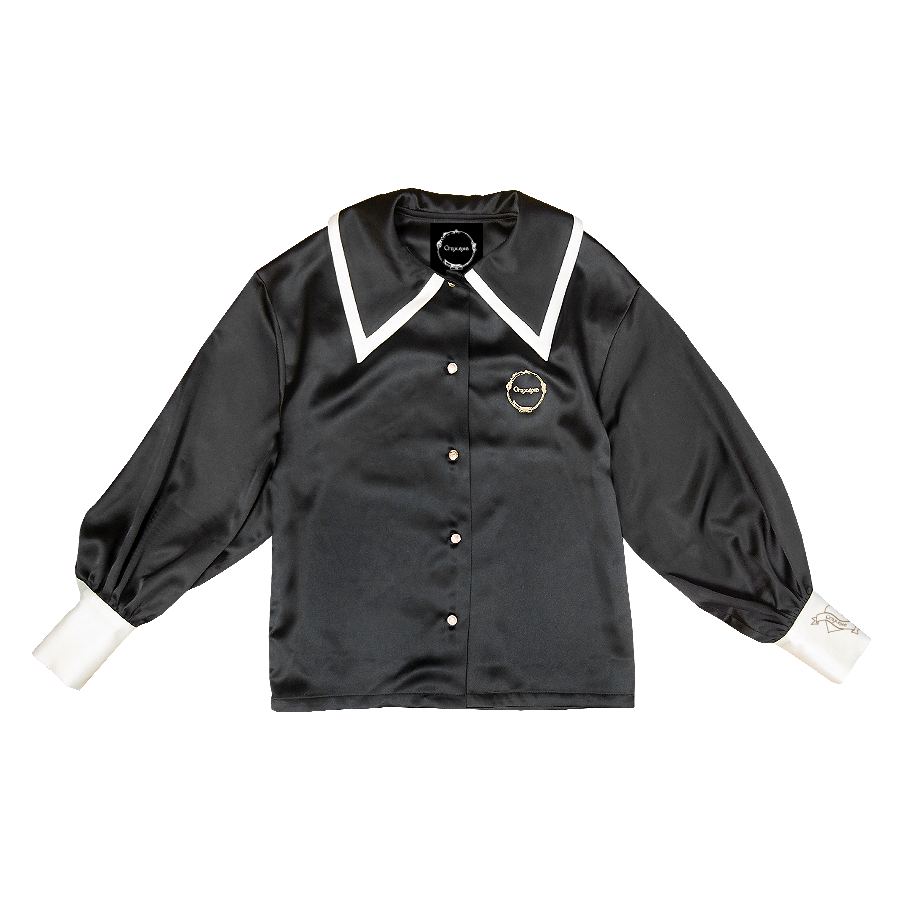 【Crux.exe】HEART EMBROIDERY QUAKER COLLOR SHIRTS - BLACK×WHITE